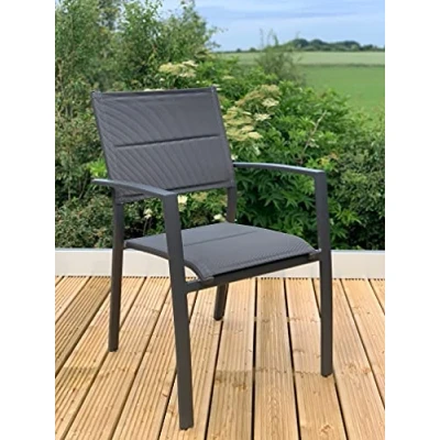 Garden Store Direct GSD Sydney Aluminium Dining Sets w/Textured Glass Table Tops, Paded Weatherproof Textilene Stacking Chairs (Single Chair)