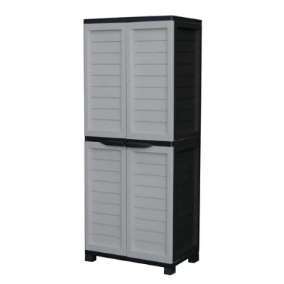 Weather proof Cabinets made from heavy duty polypropylene which makes it both durable and rust-free! Lockable - keep the contents within safe and secure! Quick assembly - no tools required! Tough durable floor Size: 75CM(L) x 52.5CM(W) x 187CM(H) With feet / 180 Without feet Inner Dimensions: 69CM(L) x 43CM(W) x 179CM(H)