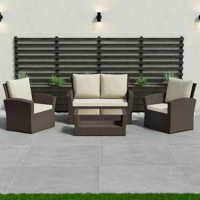 Garden Vida Mylor 4 Seater Rattan Furniture Set, Outdoor, Patio Furniture, Conservatory Sofa Brown (UKFR Certified)