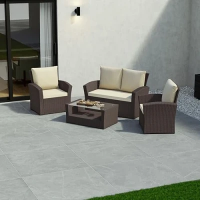 Garden Vida Mylor 4 Seater Rattan Furniture Set, Outdoor, Patio furniture, Conservatory Sofa Set (Brown, With Cover)