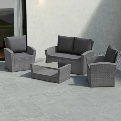 Garden Vida Mylor 4 Seater Rattan Furniture Set, Outdoor, Patio furniture, Conservatory Sofa Set (Grey, With Cover)
