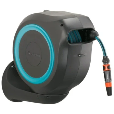 General description Convenient and flexible irrigation of medium-sized gardens is made easy with the compact Gardena 18610-20 Wall-Mounted Hose Box RollUp M. This hose box allows for effortless watering, saving both time and storage space. It can be easily attached to the wall of your house, ensuring safe storage of the water hose and simplifying the process of rolling it up after use. The wall bracket swivels over 180 degrees, providing freedom of movement while preventing kinks in the hose. Technical specifications Hose length: 20 meters Wall bracket: Swivels over 180 degrees Material: High-quality, UV and frost-resistant Includes: Wall bracket, flexible connecting hose, Original GARDENA System connectors, assembly parts, and a sprayer with two spray jet options Usage Pull out the 20-meter hose to the desired length for immediate watering Locking points automatically fix the hose at short intervals for easy watering Release the locking mechanism with a light pull on the hose end for