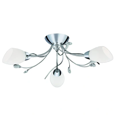 Gardenia 3 Light Multi Arm Ceiling Semi Flush Chrome, Crystal and Opal Glass, E14
