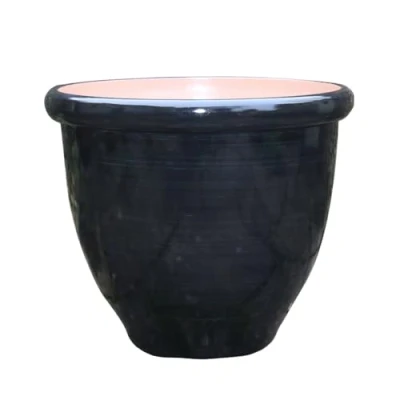 Gardening Naturally Cortona High Gloss Indoor Outdoor Plant Pot Black and Blue Planters in Multiple Sizes (Black, Extra Large)