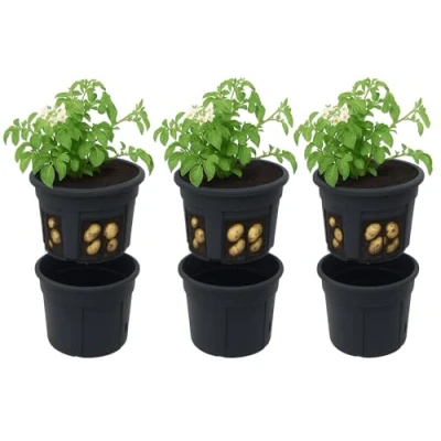 Convenient and practical solution for growing potatoes at home Available in two sizes: 30cm and 40cm in diameter Smaller pot dimensions: 295mm in diameter, 236mm in height, and 12 litres volume Larger pot dimensions: 392mm in diameter, 316mm in height, and 28 litres volume Made from durable materials designed to last for many growing seasons