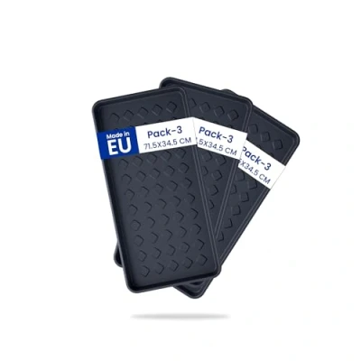 3 x drying mat shoes: our polypropylene drying mat for shoes is ideal for rain, autumn and winter. It reliably protects your floor from dirt and rainwater. Perfect as a shoe rack hallway or shoe drip tray small. Slim shoe rack: this narrow shoe rack is versatile. Use it as a plastic tray flat for wet shoes or as a square pot saucer. With a raised edge of 3 cm, it offers optimal protection. Made in the EU shoe mat inside: give your home order with the shoe mat for indoors. It can hold up to 5 pairs of shoes and also serves as a foot scraper outside. This keeps your floor clean and well maintained. Food tray application: our drying mat is not only a shoe mat, but also can be used as a food tray. Ideal as a bowl mat or food collection tray. It is made of durable polypropylene plastic. Shoe tray: the drip tray shoes is the perfect solution for wet trainers and work shoes. Use them as a draining cup shoes or plastic bowls for the garden. A drip tray flat for every need.
