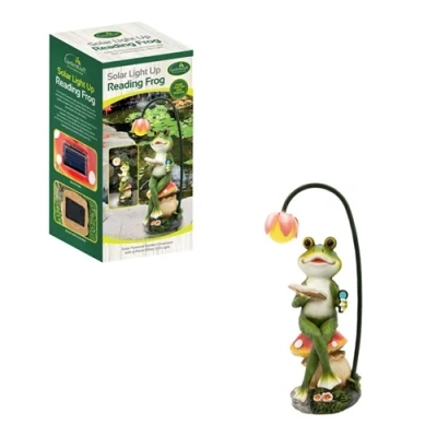 GardenKraft Cute Frog Reading Under Solar Fairy Flower Light
