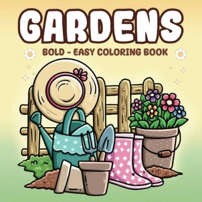 Gardens: Bold & Easy Coloring Book: Into Gardens for Relaxation with Simple Nature Themes, Plants, Flowers, and Cute Animals Adults Teens