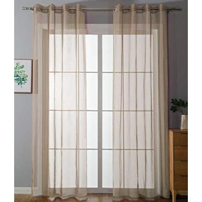 Gardinenbox 20332 cn2 Set of 2 Eyelet Curtains Transparent Plain with Eyelets Lead Band Closure for Living Room 100% Polyester Sand 225 x 140 cm