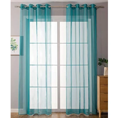 Gardinenbox 203322 Pack of 2 Eyelet Curtains Transparent Curtain Set Living Room Voile Lead Tape Finish H x W 225 140 cm Turquoise