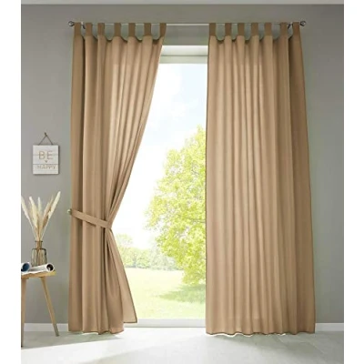 Set of 2 opaque and transparent curtains made of microsatin with loops and ruffled tape. The curtains come complete with a tieback. Micro Satin: This fabric combines the properties of microfibre and satin in an ideal way. Microfibre is very soft and keeps its shape, satin has a smooth surface. This creates a very elegant look. The curtains are equipped with loops and additional ruffle tape for rails. Simply cut the loops (approx. 10 cm) if you want to use the curtain with ruffle tape. Box contents: 2 curtains, each with a tieback, colour: sand. Size: H x W 225 x 140 cm. The dimensions always refer to a curtain without ruffles. International products have separate terms, are sold from abroad and may differ from local products, including fit, age ratings, and language of product, labeling or instructions.