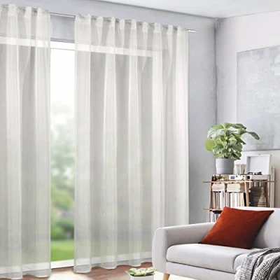 Dimensions: approx. 245 x 135 cm (height x width) Sylvia curtain panel with tape or concealed loops. This transparent, plain curtain blends effortlessly into any room and fits many living styles. The lightness of the curtain gives the room a special touch. Colour: cream The curtain can be washed at up to 30 °C in the washing machine. Please do not use optical brightener, or it is not suitable for tumble drying.