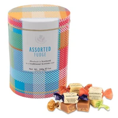Complete with a decorative tartan tin design Our assorted fudges include firm favourites and is the perfect something for lovers of all things delicious Bursting with a true taste of Scotland