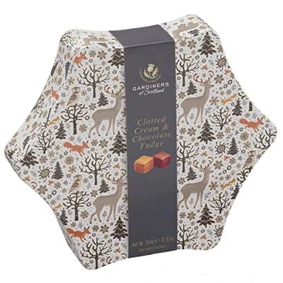 Our handmade clotted cream fudge & chocolate fudge comes complete in this special star shaped tin The perfect gift for Christmas Bursting with a true taste of Scotland
