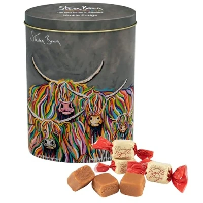 Gardiners Award winning Luxury Handmade Soft Fudge Luxury Handmade Vanilla Fudge 250g Handmade in ScotlandSteven Brown Renowned Artist Design, Ideal Exclusive Gift Tin