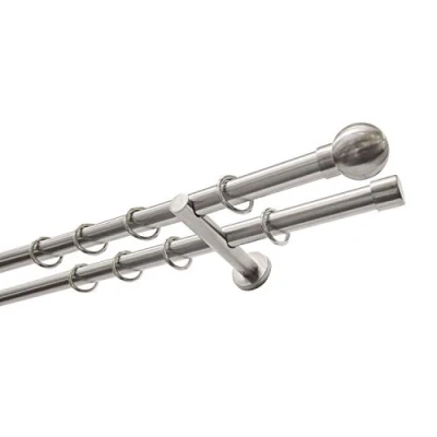 Gardinia Curtain pole set ball 2 track diameter 20 mm stainless steel look, Metal, 160 cm / Lauf