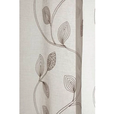 Gardinia Curtain with Eyelets, Vine Leaves Embroidery, Brown, 135 x 245 cm