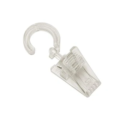 Practical, transparent hook with clip for curtain rings, ideal for attaching curtains and curtains Easy to install: simply hang in the rings (sold separately), easy to attach the curtain or curtain fabric using the clips Multiple combination options: discreet hooks with sturdy brackets for hanging curtains without loops Easy to put on and close: easy to move the curtain, no damage to the curtain rod Box contents: 6 x GARDINIA hooks with clip for curtain rings, diameter 28 mm, plastic, transparent