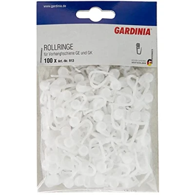 Practical curtain hooks for all GE and P2U curtain rod models, Ideal for fitting curtains and drape with loops Easy installation: Easy, lateral insertion of rollers into curtain rail, Uncomplicated insertions of hooks into loops Various combinations, Unobtrusive rollers, Sleek design Hassle-free sliding: Easy curtain positioning thanks to the fixed rollers Contents: 100 GARDINIA Rollers With Hooks, For GE And P2U Curtain Rod Models, Plastic, White