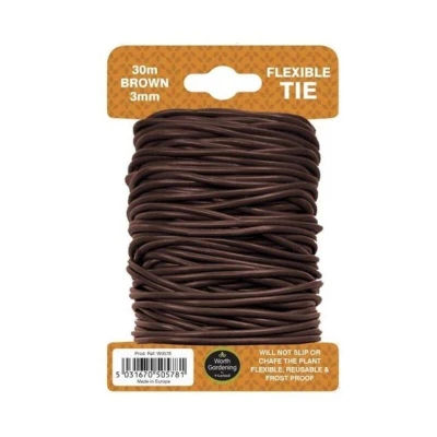 General description Flexible Tie is a versatile and durable solution for tying plants and other items. Available in two sizes, these ties are designed to meet various needs while providing strength and flexibility. The ties are made from soft, stretchy plastic that grows with the plants they support, ensuring they won't slip or chafe. Technical specifications Length: 30m Width: 3mm Available colors: Brown, Blue, Green Reusable and frost proof Usage Ideal for tying plants and securing items Exceedingly strong, capable of holding all types of knots without slipping Soft and stretchy to accommodate plant growth