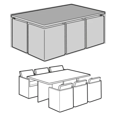 General description Keep your Rattan Furniture looking its best with our Rattan Furniture covers from the Worth Gardening range by Garland. These covers are designed to protect your furniture against the elements, including bird droppings and tree sap, while being easy to clean. Technical specifications Material: Super Tough Polyethylene Dimensions: 213 cm x 132 cm x 71 cm High (84" x 52" x 28" High) Welded waterproof seams 5-year manufacturer's guarantee Color: Black Compatibility and accessories Designed for 6-seater rectangular cube sets Installation Features drawstrings with cord locks to keep the cover securely in place Usage Wipe clean and UV treated to prevent fading