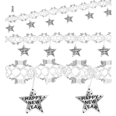 Garland Happy New Year 3M Silver Accessory for Fancy Dress