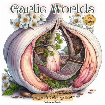 Garlic Worlds Grayscale Coloring Book: Featuring Magical, Peaceful Scene, Birds and Fruit Hidden inside Cloves for Creativity Relaxation (Whimsical world small things.)