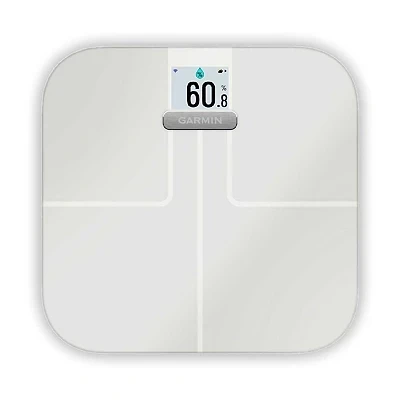 Garmin Index S2 Smart Scale, measure weight & body composition, BMI, trend, fat percentage, muscle bone mass, built in wifi, pair with Connect, up to 16 users, White