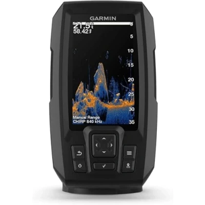 Amazon MarketplaceEasy-to-use 4-inch color fishfinder with new vivid scanning sonar color palettes to easily distinguish fish and structure; tilt/swivel bailmount bracket included Includes a GT20 transducer for built-in Garmin CHIRP traditional sonar and CHIRP ClearVü scanning sonar High-sensitivity GPS to mark waypoints, create routes and view your boat’s speed Includes built-in Quickdraw Contours mapping
