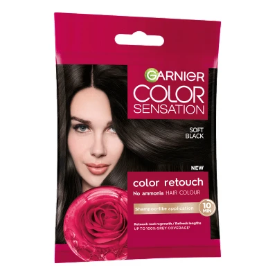 Garnier Color Sensation Retouch 2.0 Soft Black offers quick, easy application in just 10 minutes, with up to 4 weeks of color and 100% gray coverage. Designed for natural-looking results, it’s a convenient at-home solution for root touch-ups or color refresh.