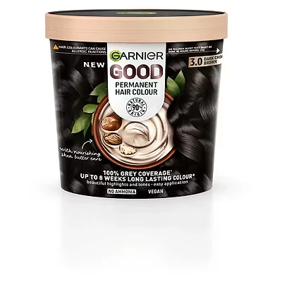 21 Advantage card points. Garnier GOOD Permanent Hair Dye (Shade: 3.0 Dark Chocolate Brown) for vibrant, lasting colour FREE Delivery on orders over 45 GBP.