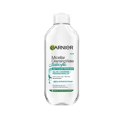 Complete Makeup Removal: An advanced anti-imperfection micellar water designed to cleanse and remove any type of makeup from the face, eyes, and lips, leaving zero residue behind for a perfectly clean feel. Targeted Blemish Control: Our powerful formula is enriched with Salicylic Acid specifically for oily to blemish-prone skin. It actively works to mattify your complexion for up to 8 hours* for a shine-free finish. Gentle For All Skin: Suitable for all skin types, including sensitive skin. This conscious formula is 100% Vegan and contains no animal-derived ingredients or by-products, ensuring a gentle yet effective cleanse. Effortless No-Rinse Application: Simply pour onto a cotton or reusable pad and wipe without rubbing to cleanse in the morning or remove makeup at night. No rinsing is required, making it perfect for a quick routine. Leaping Bunny Approved: Shop with confidence knowing all Garnier products globally are approved by Cruelty Free International under the Leaping Bunny Programme—the recognized gold standard for cruelty-free beauty