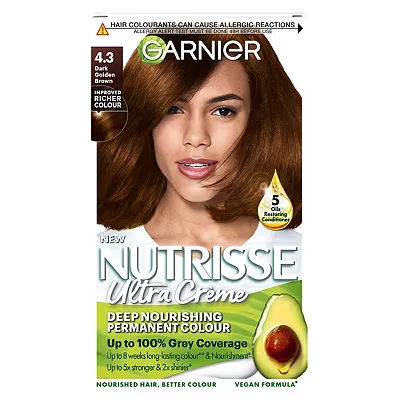 Boots200 Advantage card points. Garnier Nutrisse Crème Permanent Hair Colour 4.3 Dark Golden Brown FREE Delivery on orders over 45 GBP.