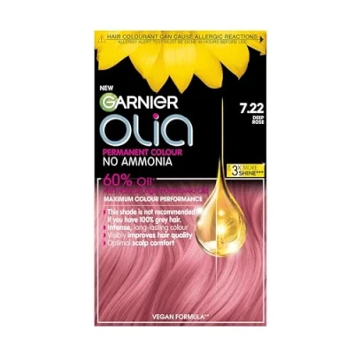 Garnier Olia Permanent Hair Dye, Up to 100% Grey Coverage, No Ammonia, 7.22 Deep Rose