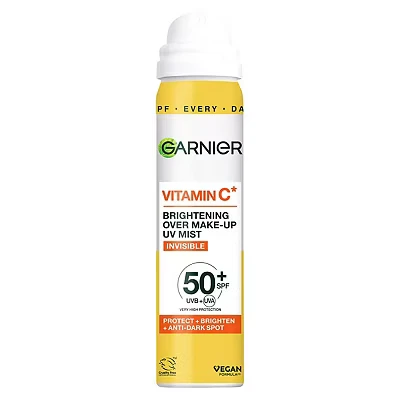 Boots27 Advantage card points. Garnier Vitamin C Brightening Over Make-Up UV Sun Cream Mist, Invisible Protection, SPF50+, 75ML FREE Delivery on orders over 45 GBP.