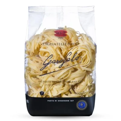 JoybuyGarofalo Tagliatelle 500g is premium Italian pasta made in Gragnano, Italy from 100% organic durum wheat semolina. Shaped into classic flat ribbons, it offers authentic taste and texture, perfect for pairing with rich meat or creamy cheese sauces.