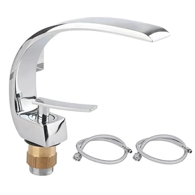 Garosa Water Faucet, G1/2 Curve Design Full Copper Sitting Type Faucet Bathroom Basin Hot Cold Mixer Tap Single Handle Sink with 60 cm Hose,washbasin