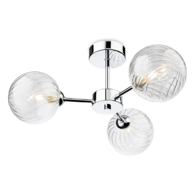 The Firstlight Garrick 3-Light Semi-Flush Ceiling Fitting is an attractive modern fixture that offers decorative, sparkling illumination. This fitting features a contemporary, multi-directional design, finished in gleaming chrome. It holds three spherical clear decorative glass shades that showcase a subtle swirl or ripple pattern, adding texture and brilliance to the light output.This semi-flush design is perfect for rooms with lower ceilings, projecting just 205mm. The 375mm diameter ensures it provides ample light coverage for general illumination. The combination of the polished chrome and the transparent decorative glass creates a crisp, vibrant, and sparkling effect, making it ideal for use in living rooms, kitchens, bedrooms, and hallway areas.The fixture requires three standard G9 bulbs with a maximum wattage of 33W each (sold separately). We strongly recommend pairing this light with LED G9 capsule bulbsespecially decorative filament-style LEDsto maximise the visual effect created by the clear glass shades while ensuring superior energy efficiency. Shop now at SimplyLED to secure this premium contemporary ceiling light.Requires 3 x G9 bulbs max 33W (sold separately).