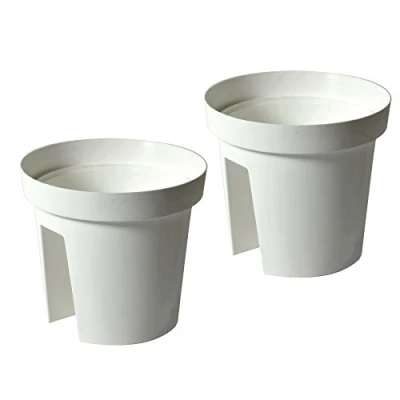 Gartenfreude Flower Pot, White, Geländertopf 2er Set 28 x 25 cm