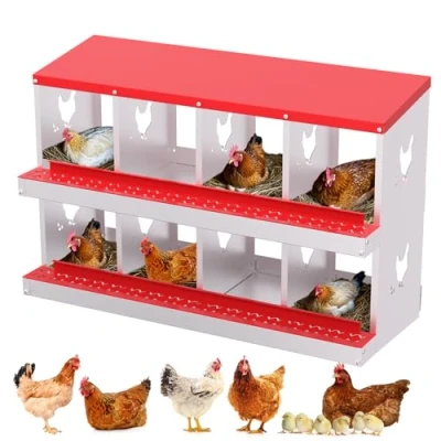 Heavy-Duty Galvanized Steel: Crafted from rust-resistant steel, these nesting boxes offer long-lasting durability for backyard or commercial poultry coops. Best Egg Protection: The sloped design and roll-away tray keep eggs clean and intact, reducing breakage and maximizing egg collection efficiency. Spacious & Comfortable: Each compartment provides ample, stress-free space, simulating a natural environment to boost hen comfort and egg production. Versatile Use: Perfectly fits chickens, ducks, geese, and rabbits; ideal for small homesteads or large-scale farms with flexible mounting options. Easy Assembly & Maintenance: Includes all hardware for quick installation; removable trays and ventilated design simplify cleaning and ensure hygiene.