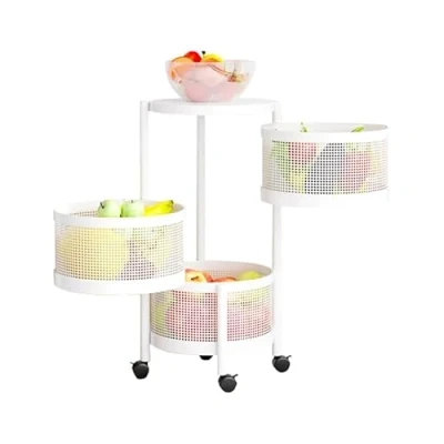 High-quality material: serving trolley. The fruit trolley measures 61 x 30 x 30 cm (3 levels); 75 x 30 x 30 cm (4 levels); 90 x 30 x 30 cm (5 levels), is made of high-quality steel with strong load capacity. Kitchen trolley with wheels. The sturdy steel frame is dimensionally stable and durable, so your food can be stored safely and healthily without worrying about quality problems. Rotating grid basket: each level of the metal vegetable rack can be swivelled 360° and thus allows easy access to the contents of the baskets. The mesh design ensures good ventilation and the hollow structure promotes air circulation and keeps your food in optimal condition. The breathable baskets keep stored fruit and vegetables fresh for a long time. Movable wheel design: the rotating kitchen cabinet is equipped with four 360 degree trolleys that allow you to easily move this cabinet and use it anywhere. In addition, you can easily remove it to clean the floor and keep the room tidy. Easy to assemble and clean: you can use the roller storage basket directly without setup. By moving the wheels, you can easily clean the kitchen. If you want to clean the rotating basket, you can remove the baskets individually. Multi-purpose function: this vegetable storage rack is designed to store this vegetables, fruit and other things in your home safely and tidy, can not only make your kitchen look neat and tidy, but can also be placed in your living room or bedroom. Multi-Purpose Mobile Metal Storage Cart: the storage cart fruit basket can create vertical storage space wherever you need it, such as kitchen, bedroom, playroom, garage or office, dormitory, etc.