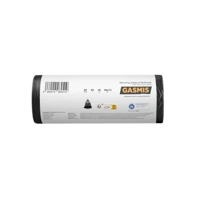 GASMIS Bin Liners with Drawstring 60 L 1 x 20 Pieces Recycled Waste Bags 45 µm, Extra Strong & Leak Proof Rubbish for Household Garden Roll