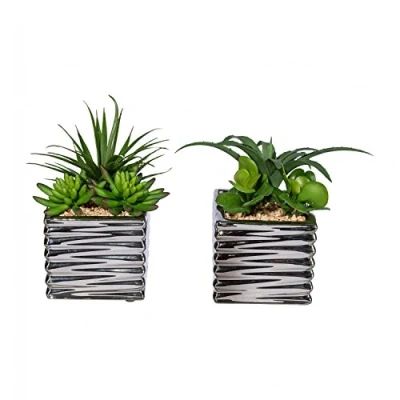The practical 2-piece Succulent arrangement artificial plant comes into its own especially in a silver ceramic pot This high-quality artificial plant set contains two arrangements of 3 true-to-life succulents each, as an easy-care alternative you can also decorate difficult locations in your home or business A harmonious overall picture that fits into any ambience and gives even dull corners immediately more homeless This item is supplied in a silver ceramic pot Product details: Quantity: 2 plant arrangements in the pot. Dimensions (W x D x H): approx. 10/9/18 cm