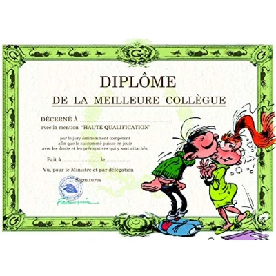 Gaston Lagaffe Diploma Card of The Best Collegement Friend Bise Mlle Mademoiselle Jeanne Belle Robe for Girl Woman