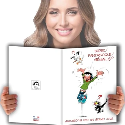 Gaston Lagaffe glmx 2020 Large Congratulations Card + Envelope A4 Giant Big Event Illustration Good News Bravo Champagne Maxi