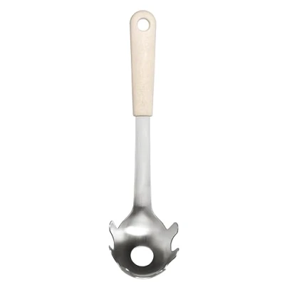 GastroMax BIO utensils combine durable stainless steel blades with handles made from renewable materials. This spaghetti spoon is perfect for serving spaghetti and noodles. The hole in the spoon head measures one portion of dry spaghetti, making it easy to cook the right amount. The handle is made from 80 % bio-based plastic, consisting of sugarcane and wood fibres from Nordic spruce. Made in Sweden.