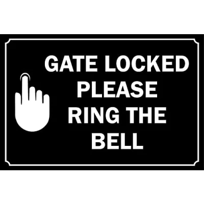 Gate locked please ring the bell sign 1mm Plastic sign Digitally printed for extra durability Drill and screw in position or use double sided tape to mount onto suitable surface.