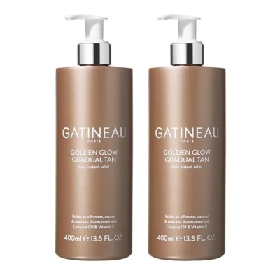 GOLDEN GLOW - A fast-absorbing cream-gel which instantly hydrates and gradually tans the body. In this pack you will receive 2 x 400ml bottle of Golden Glow Gradual Tan. SUN-KISSED TAN - Golden Glow Gradual Tan melts into the skin to give a natural, sun-kissed and buildable tan in just 4 hours from first application. Quick drying and non-sticky formula. SUN-KISSED TAN - Golden Glow Gradual Tan melts into the skin to give a natural, sun-kissed and buildable tan in just 4 hours from first application. Quick drying and non-sticky formula. HOW TO USE - Apply 1 pump per limb using smooth circular motions and rub in thoroughly. Lightly smooth over dry areas such as hand, elbows, knees and feet. Wash hand after use, particularly between fingers, wait for skin to be touch dry before dressing. Colour develops over 3-4 hours, use daily for 3 days to achieve your desired glow, maintain colour by applying every other day. HERITAGE BRAND - Gatineau was founded in Paris in 1932 by visionary Beauty Therapist, Madame Jeanne Gatineau. A woman with a true passion for beauty, she set out to provide revolutionary skincare solutions and treatments for women all over the world. Today, Gatineau’s powerful formulations continue to combine natural ingredients with cutting edge biotechnology to create professional quality skincare that helps to deliver immediate and long-lasting results.