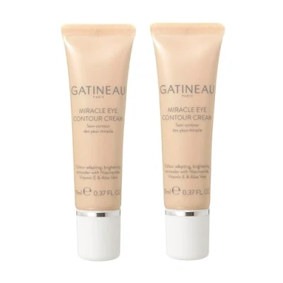 CONCEAL IMPERFECTIONS - This lightweight and hydrating treatment instantly adjusts to your skin tone and lightly conceals dark circles and imperfections, transforming tired looking eyes whilst smoothing skin and boosting radiance. HYDRATES & SOOTHES - Soothe delicate skin around the eyes with Aloe Vera and Green Tea while Ginseng Root Extract energises and refines the skin. In this pack you will receive 2 x Miracle Eye Contour Cream, 11ml. HYALURONIC ACID & VITAMIN E - Formulated with hyaluronic acid and Vitamin E to plump and hydrate tired looking eyes. HOW TO USE - Apply a small amount under and around the eye contour, over the eye lids and directly under the brow, pat gently to blend. Can be worn alone or under/over make-up as preferred. HERITAGE BRAND - Gatineau was founded in Paris in 1932 by visionary Beauty Therapist, Madame Jeanne Gatineau. A woman with a true passion for beauty, she set out to provide revolutionary skincare solutions and treatments for women all over the world. Today, Gatineau’s powerful formulations continue to combine natural ingredients with cutting edge biotechnology to create professional quality skincare that helps to deliver immediate and long-lasting results.
