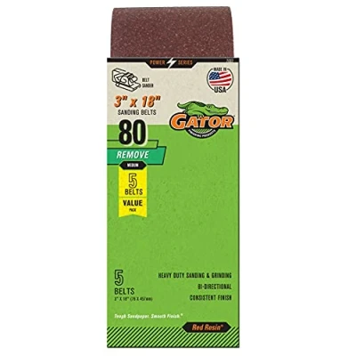 Gator 3" x 18" Red Resin Aluminum Oxide Sanding Belts, 80 Grit, 5 Pack